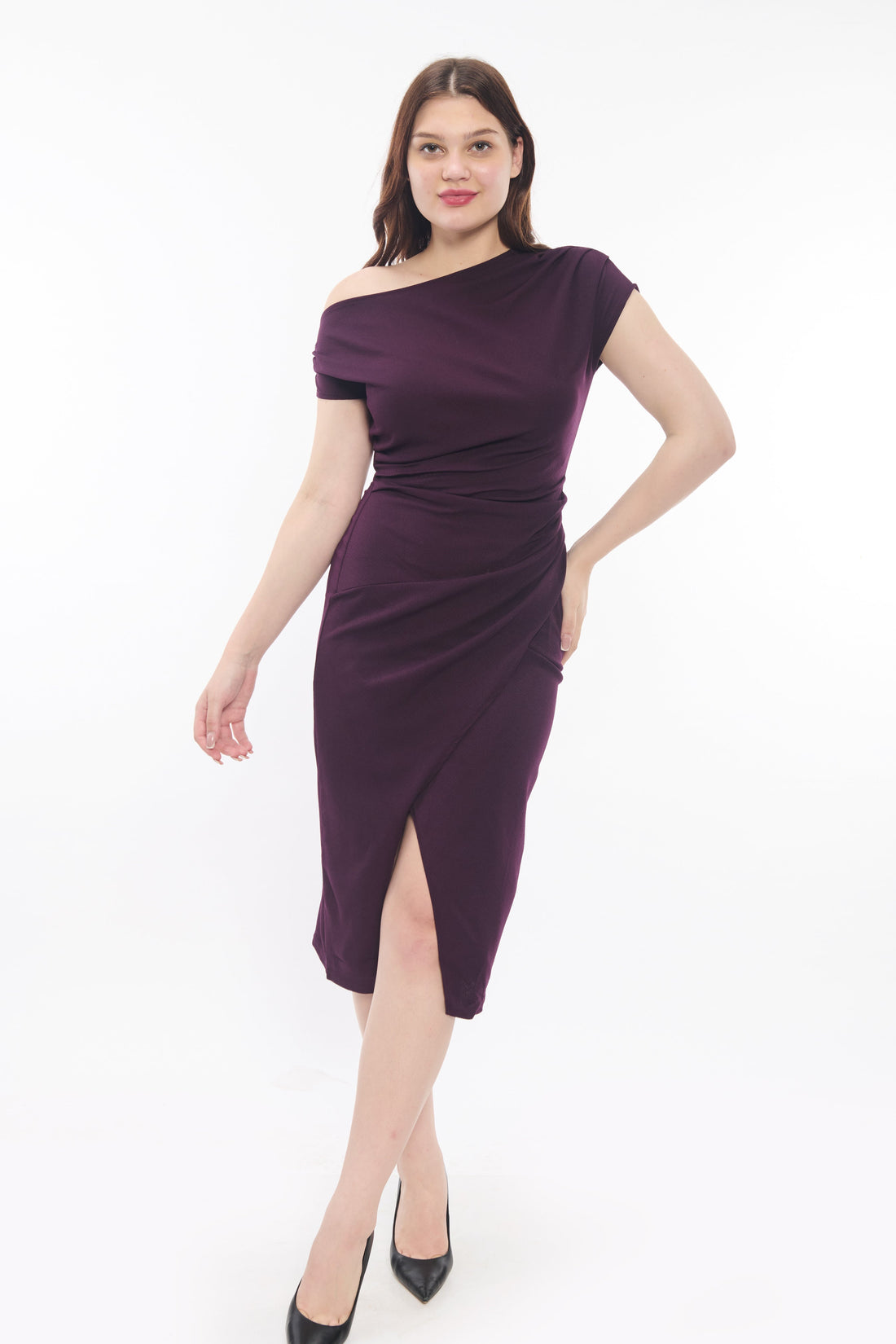 Wine One Shoulder Bodycon Midi Dress for Women