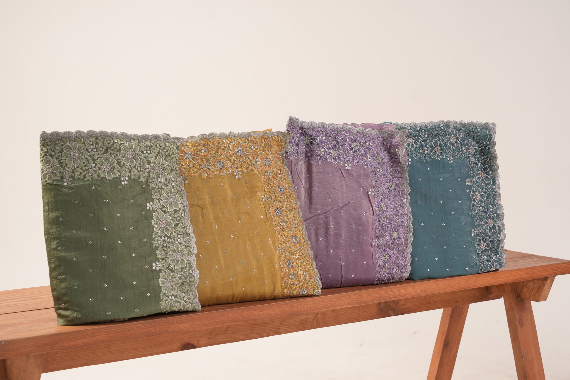 This embellished saree with a silver embroidered border adds a touch of grace and sophistication. Perfect for wedding functions, receptions, and festive gatherings. Its soft hue and intricate detailing enhance your ethnic charm effortlessly.